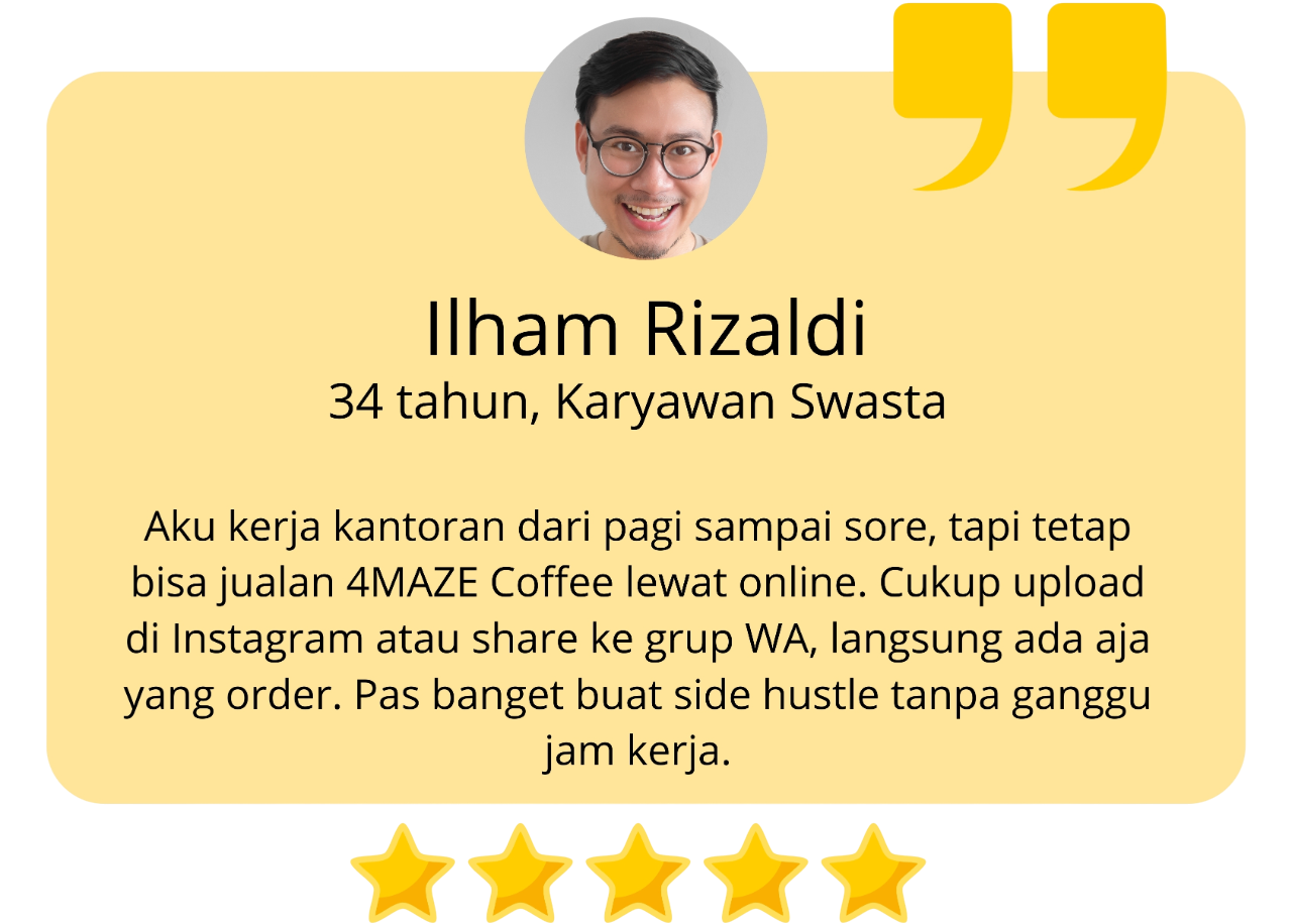Tenang aja! Tim 4MAZE siap bimbing kamu dari nol. Dikasih materi, template promosi, dan support jualan juga. Yang penting niat dulu, cuan ngikutin!